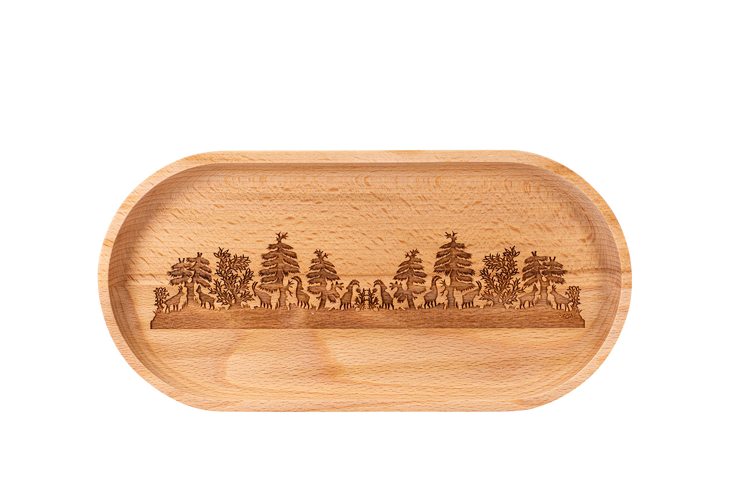 Holzteller oval, "Steinböcke", Buche, div. Grössen