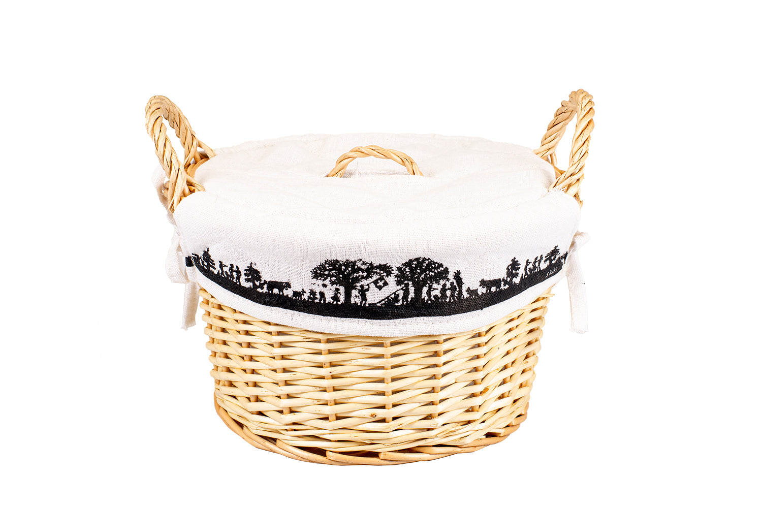 - 1 Weidenkorb mit Deckel, Ø 23 x 18 cm